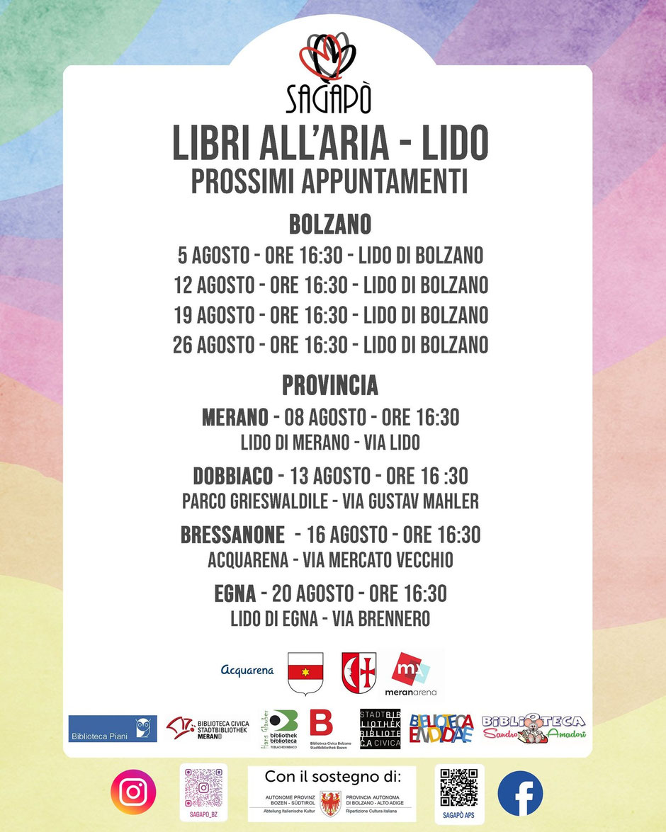 Si ringrazia per il sostegno l’Ufficio Bilinguismo e lingue straniere (Ripartizione Cultura italiana) della Provincia Autonoma di Bolzano.